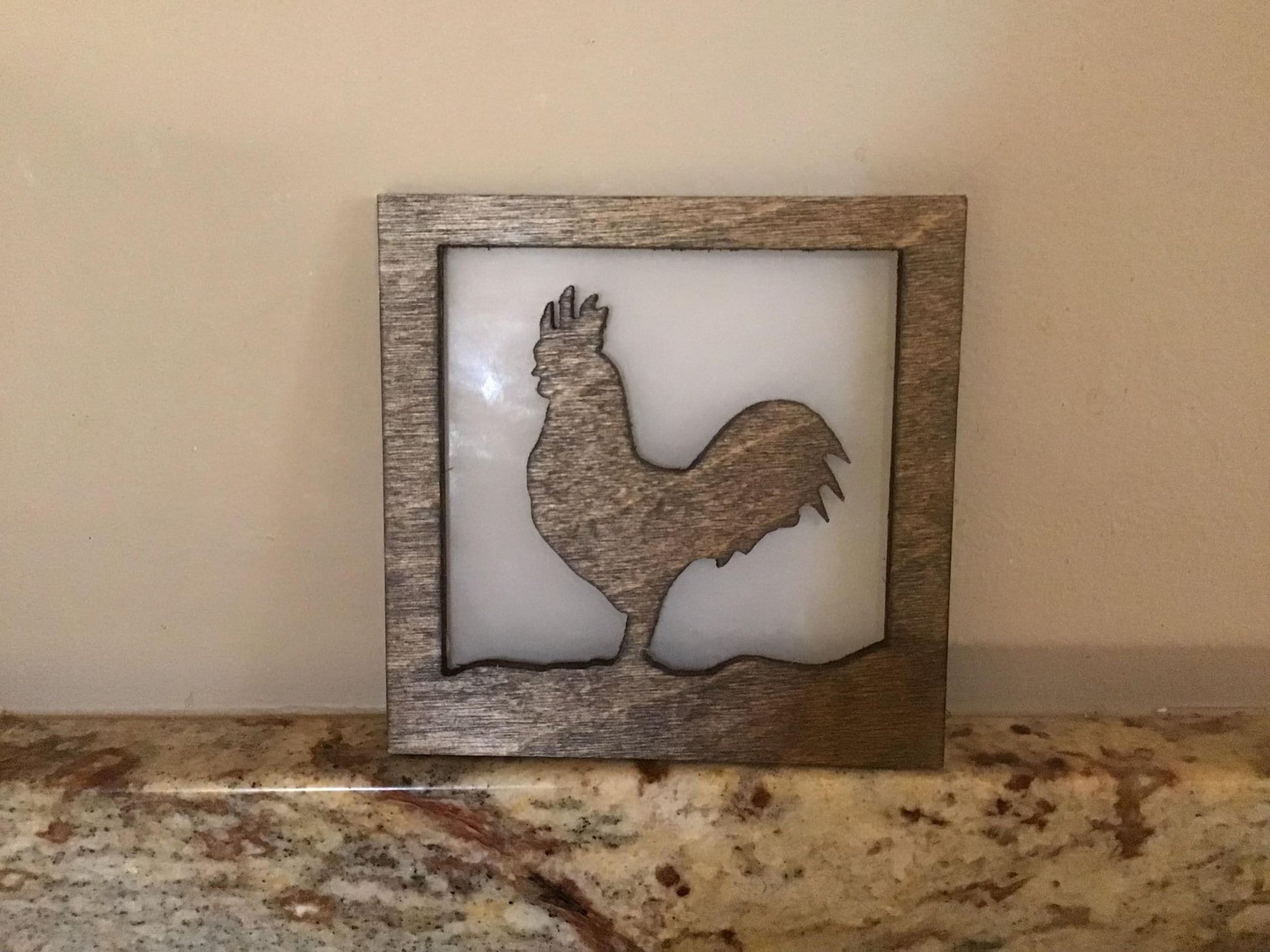 This farm animal-themed interchangeable night light shade features a beautifully carved rooster. This would make a great gift for the rooster or chicken owner or lover, a 4H or FFA participant or his or her Mom or Dad, someone who shows chickens or roosters at a livestock show or the fair, or farm owner in your life and would make a beautiful accent piece to enhance the rustic decor in your home, cabin, or RV decorated in a rooster or farm animal theme.