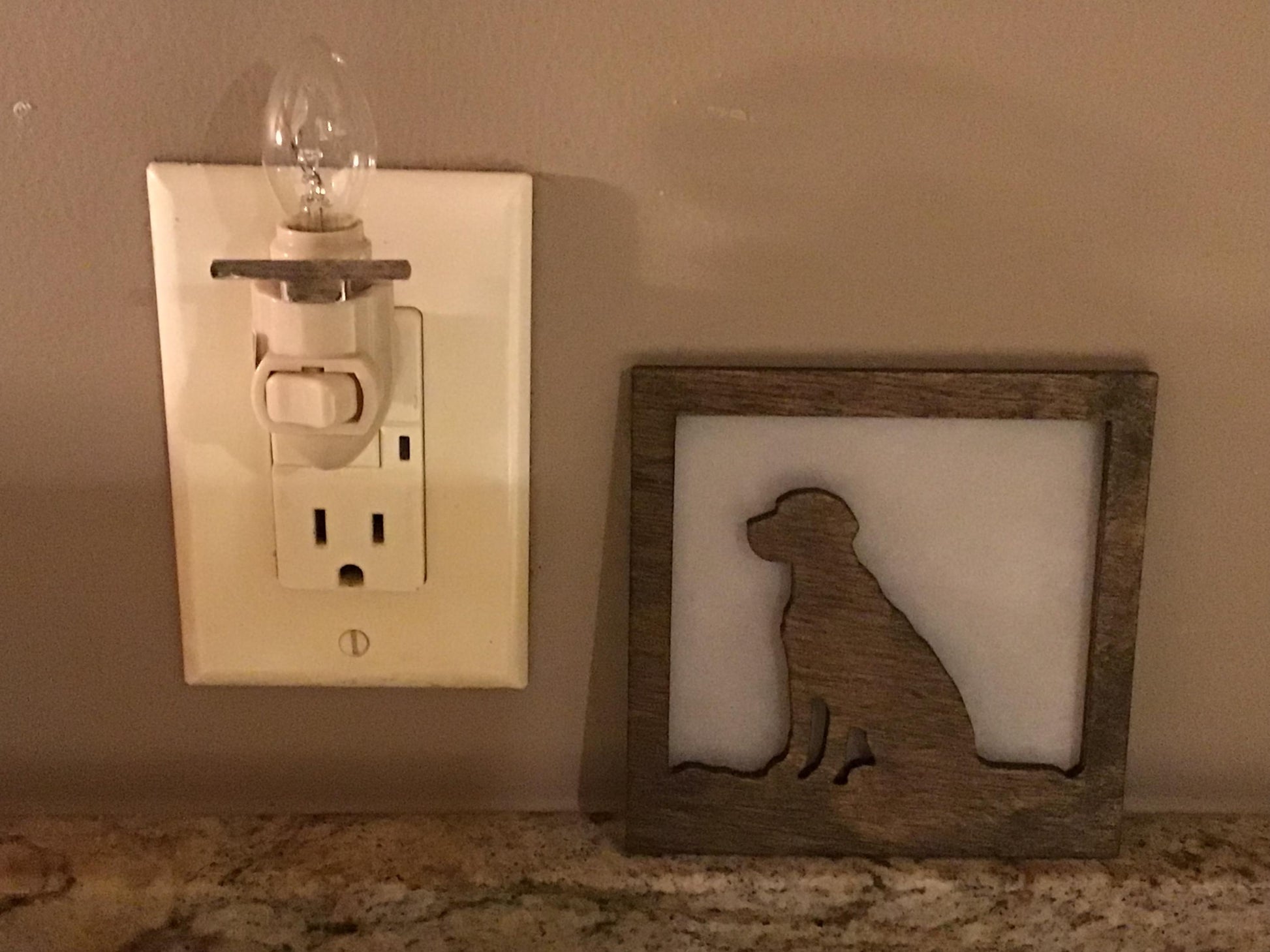 This interchangeable night light shade design features one of our dog breed designs: a Labrador retriever! What a perfect way to provide soft, ambient light in a rustic cabin or any room of a home graced by the presence of a beautiful Labrador retriever! This would make a unique, inexpensive gift for any occasion for the lab lover in your life, for the parents of a Labrador retriever, or for someone who is grieving the loss of their loyal and faithful black, chocolate, or yellow lab.