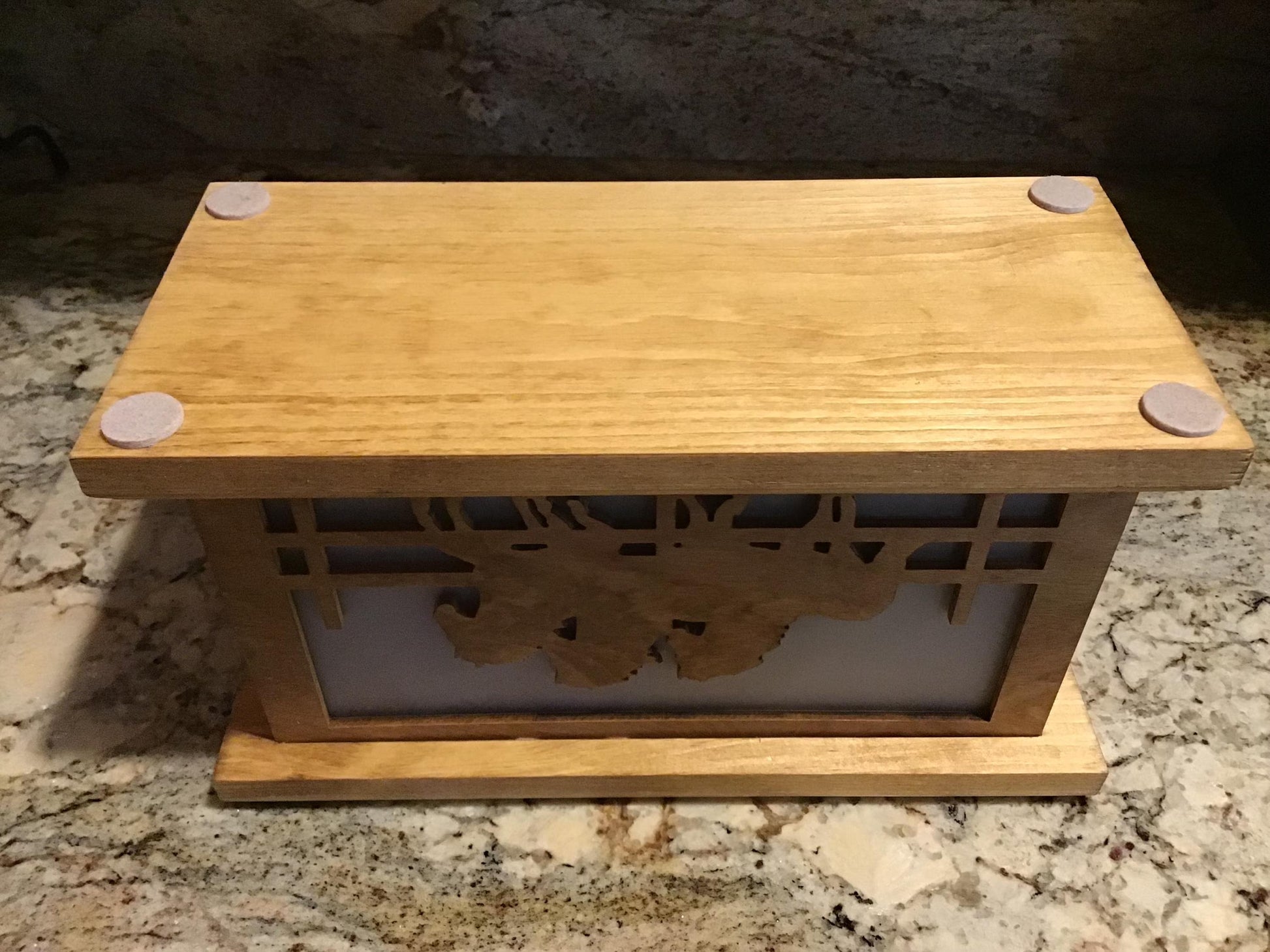 Many other designs of accent lamps as well as small plug-in night lights with carved wood covers are available on our website. Custom designs are available as well. Send us a message for details and more information on custom orders.