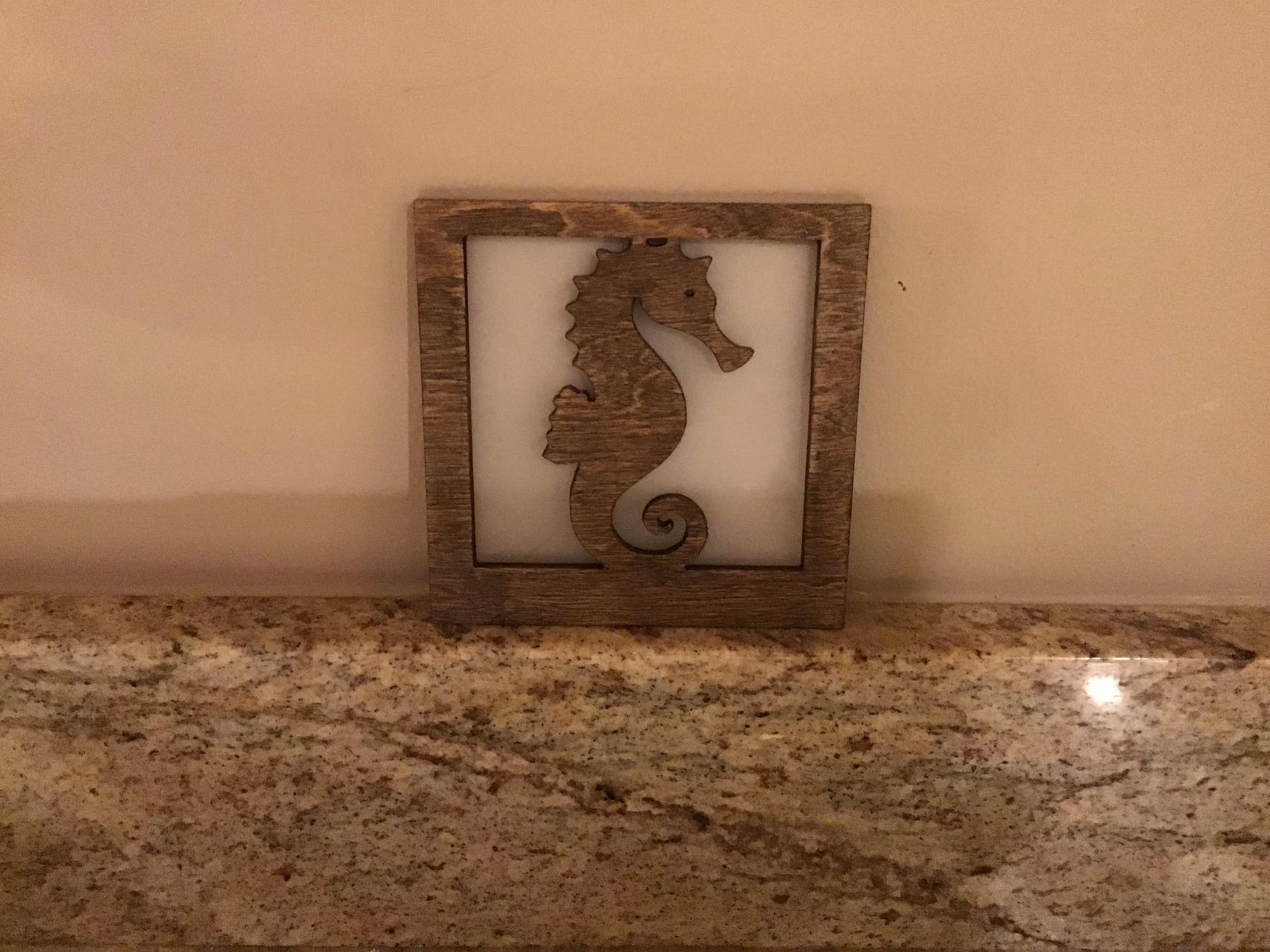 This interchangeable night light shade design features a beautifully-carved seahorse.! What a perfect way to provide soft, ambient light in a beach home or condo or in any room decorated in a tropical beach or oceanside theme. This would make a great gift for the seahorse or beach lover.
